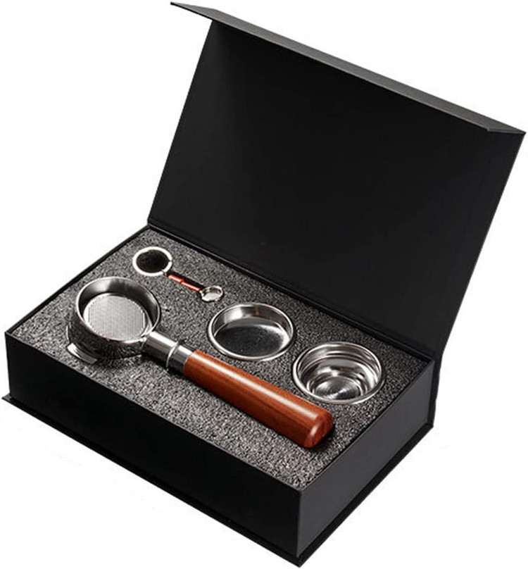 پورتافیلتر نیکد portafilter یک بخش و قطعه از دستگاه های اسپرسوساز است. این نوع از پورتافیلتر مناسب دستگاه های خانگی میباشد که پورتافیلتر های دستگاهای صنعتی سنگین تر هستند.یکی از بخش های مهم دستگاه اسپرسوساز پورتافیلتر آن و نحوه قهوه تمپ کردن آن است. این پورتافیلتر بسیار حرفه ای و زیبای منحصر بفردی رادارد.قهوه آسیاب شده برای عصاره گیری قهوه؛ در آن قرار می گیرد. .شکل کلی پورتافیلتر، یک فیلتر فلزی سبد مانند که به یک دستگیره چوبی متصل شده است. این وسیله به بخش گروپ ماشین اسپرسوساز قفل شده بطوریکه آب بتواند از میان قهوه آسیاب شده داخل سبد پورتافیلتر با فشار زیاد عبور نماید.و عصاره گیری قهوه بخوبی انجام پذیرد. بطور کلی سه نوع پورتافیلتر برای دستگاه های گوناگون اسپرسوساز وجود دارد. این پکیج شامل دو عدد بسکت و یک عدد پورتافیلتر نیکد با دسته چوبی و یک جا سوئیچی مدل پورتافیلتر نیکد میباشد. ریزش قهوه از زیر این پورتافیلتر بسیار زیبا و بسیار خامه ای کننده میباشد. جنس این پورتافیلتر استیل ضد زنگ و سنگین میباشد. با این توصیف ها فیلتر موجود در این نوع ؛ فشار مورد نیاز را برایتان ایجاد می کند و تنها یک تمپ سبک ( کوبیدن و فشرده کردن قهوه ). برای این کار کافیست و به همین دلیل یک کاربر بی تجربه هم میتواند اسپرسوی خوبی تهیه نماید. پرتافیلتر تحت فشار در واقع از یک سوپاپ و یا یم سبد فیلتر مخصوص با روزنه های کمتر ، برای ایجاد فشار بیشتر استفاده می کند ؛ که در نتیجه بدون نگرانی از نحوه فشار مناسب ، می توانید یک اسپرسوی خوب داشته باشید.